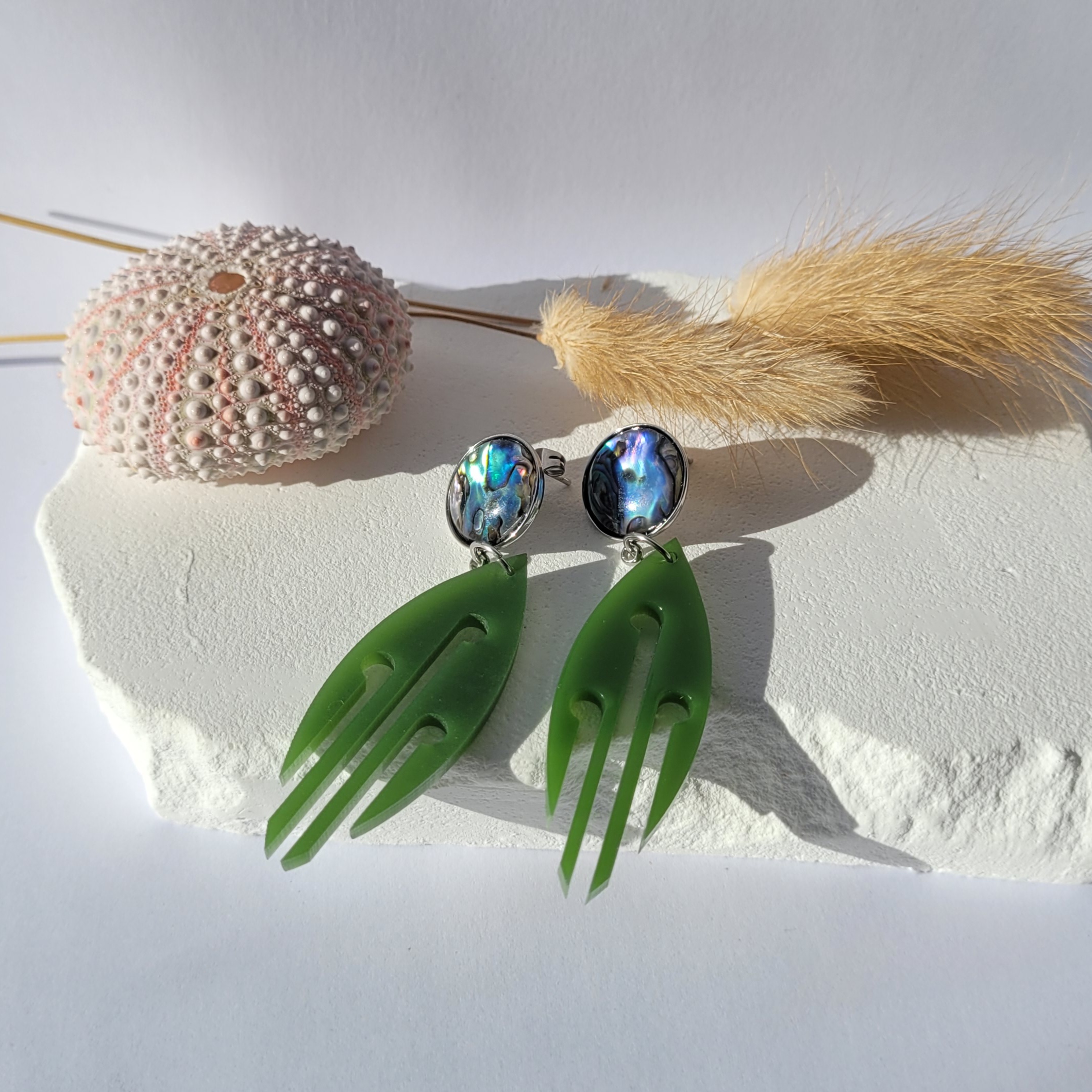 Bringing together the strength and beauty of natural Pāua shell with the Ponga design.